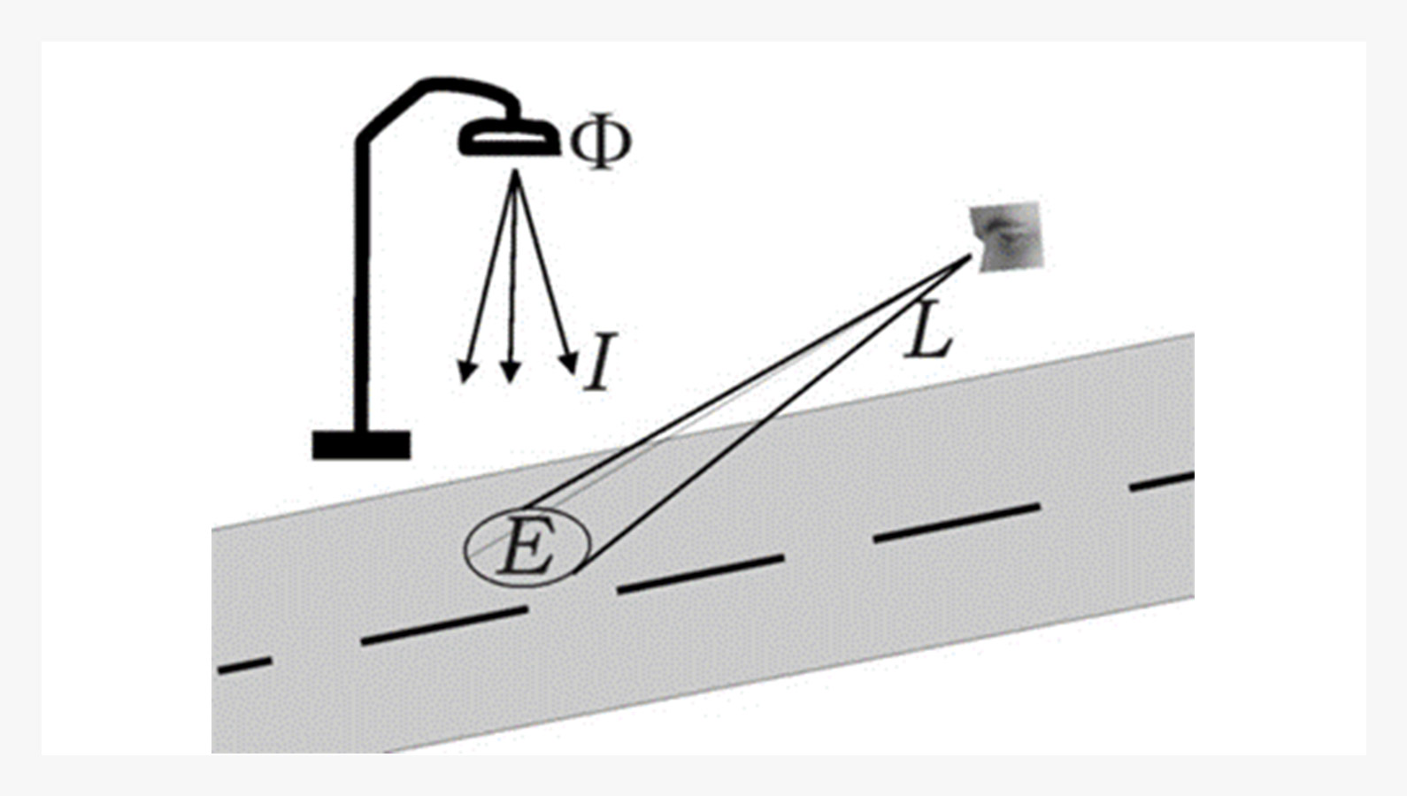A street lamp emits a Luminous Flux Φv and a part of this flux will be radiated into a certain angle Ω. The quotient is the Luminous Intensity Iv. This intensity creates the Illuminance/ Irradiance Ev on a certain area on the street and this value generates, in combination with the reflectivity of the street, the Luminance Lv, which is the visual impression for the observer of the street.