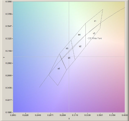 The measurements can be done in Luminous intensity mode (specbos 1411) or in Luminous flux mode (specbos 1311). It is possible to define up to 12 user specific xy ranks and store them into a file. The ranks consist of polygons with up to 9 corners.