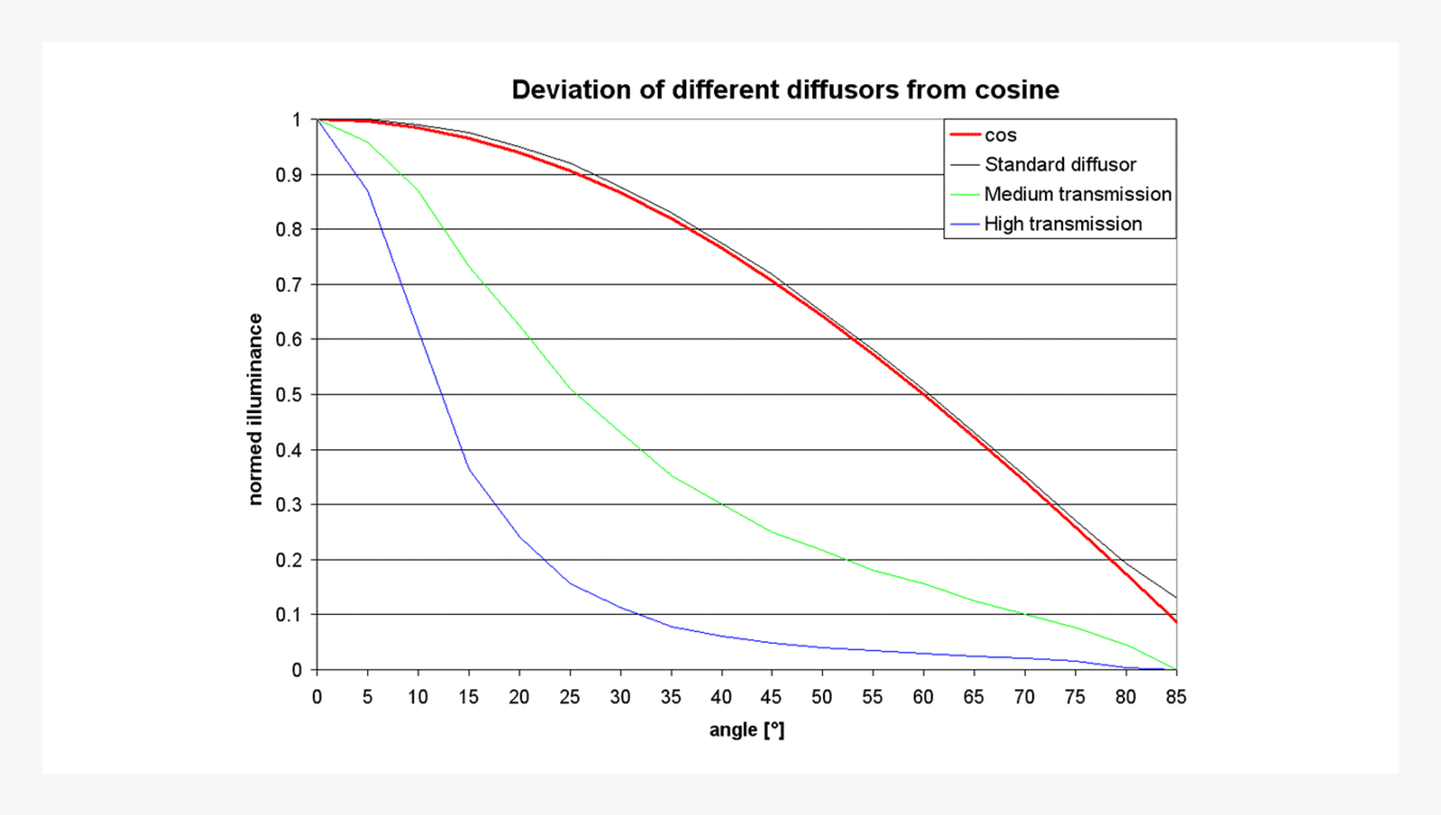 | Diffusor type: High transmission | Measuring range Illuminance (Illuminant A): 0.02 ... 12 000 lx |