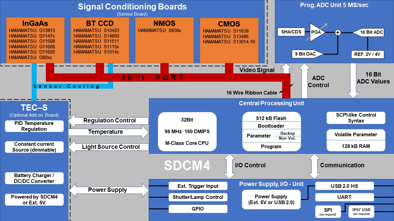 • FGPA for exact timing and nanosecond jitter readout, 200 MHz 32-bit ARM core MCU for configuration and additional features