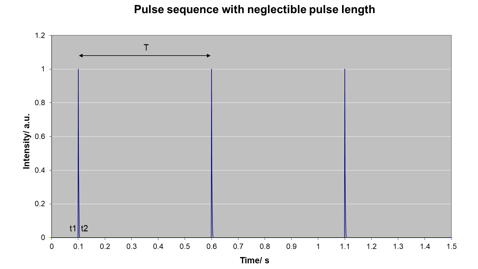 Many light sources do not emit continuously, but in a pulsed mode. Typical examples are flash lamps, emergency signs, PWM powered LEDs, but also broadcast and consumer monitors. The repetition rates can lie between 1 Hz or less (e.g. repeated flash lamps) to some 100 Hz (e.g. monitors) or 1 ... 2 kHz (LED lamps). Furthermore there exist sources with only a single shot, e.g. the flash light of a camera.