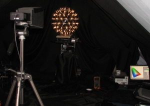 Goniometer and nearfield goniometer are used to measure the angular distribution of LEDs (Light distribution curve – angular distribution of Luminous intensity). This measurement is time consuming, but delivers the most extensive data set of a light source. The integral values like Luminous and Radiant flux will be calculated as summation of the light distribution data. “Color quantities shall be measured as values that are spacially averaged over the entire solid angle …” (from: IES LM-79).