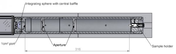 specbos 2501/500 is the combination of specbos 2501 device with a hinged 500 mm sphere with an auxiliary lamp. It can be used for 2 π and 4π measurements. The correction of self absorption is especially necessary for the 4π geometry where the full sample is inserted into the sphere and thus may drastically disturb the conditions in the sphere.